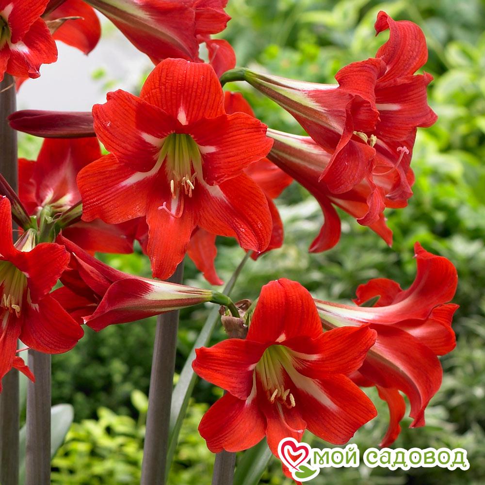 Специально выведенные сорта, более морозостойкие, чем остальные гиппеаструмы. Обильноцветущие, генетически низкорослые. Из одной луковицы появляется несколько стеблей и много бутонов. Цветки, воронковидные или трубчатые, располагаются на длинных черешках. Окраска цветка красный с белыми мазками, стебли коричневые, стебли коричневые. Предпочитает легкую, хорошо дренированную почву. Удобны для выращивания в горшках и вазонах. Легко выращиваются на открытом воздухе.