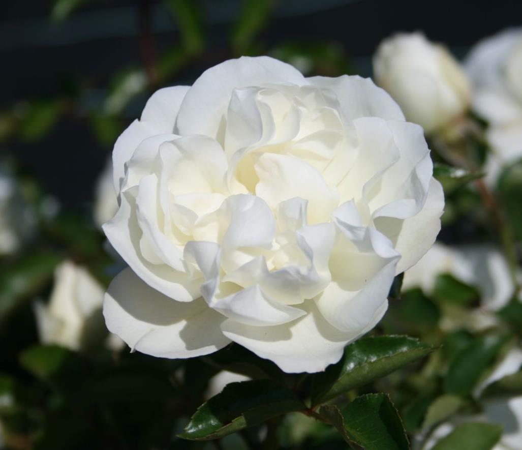 • Махровые соцветия, без запаха белого цвета. В среднем достигают 6-9 см диаметром, собраны из 60-70 лепестков;