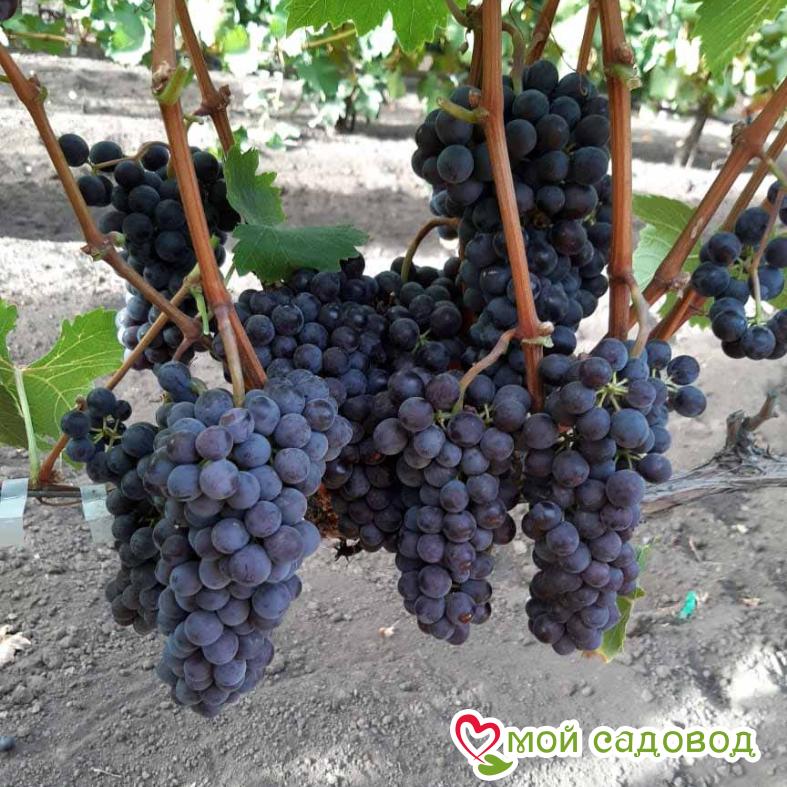 Виноград Черный жемчуг – замечательный винный сорт, который начинает созревать в первой половине сентября. Цилиндроконические грозди (250 г) с несколькими крыльями умеренной плотности. Маленькие ягоды-бусинки темно-синего цвета с нежным сладким мускатным вкусом. Высокая морозоустойчивость(-26 градусов). Магазин Мой Садовод, рекомендации по уходу Уход за виноградом сводится к регулярным поливам в сухую погоду, подкормкам и формированию куста. Для подкормки используют минеральные и органические удобрения (перепревший навоз, компост). Ранней весной кусты виноград поливают полным минеральным удобрением, растворенным в воде, перед цветением такую подкормку повторяют. Перед созреванием вносят фосфорно-калийные удобрения, а после сбора урожая проводят подкормку калием для повышения зимостойкости растений. Кроме того для лучшего вызревания лозы рекомендуется удаление пасынков и прищипывание верхушек в начале сентября. Формирование куста Винограда. Для формирования виноградных кустов необходимо установить надежную опору. Самая простая представляет собой два столба с несколькими рядами проволоки между ними. По мере роста побеги подвязывают к проволоке, задавая им нужное направление. Формирование куста винограда начинают с первого года, оставляя не более двух здоровых побегов у основания, остальные выламывают. На второй год на кусте оставляют по три почки на каждом побеге, на третий год на каждом плече оставляют 2-3 сильных побега, остальные удаляют. Пожалуйста, помните, что транспортировка и пересадка — стресс для растения. Перед высадкой в открытый грунт обработайте корневую систему стимулятором роста. С заботой о растениях, Мой Садовод. В нашем интернет-магазине вы сможете купить Винные сорта винограда Так же возможно вас заинтересуют Виноград Саперави северный и Виноград Олег (Диамант)